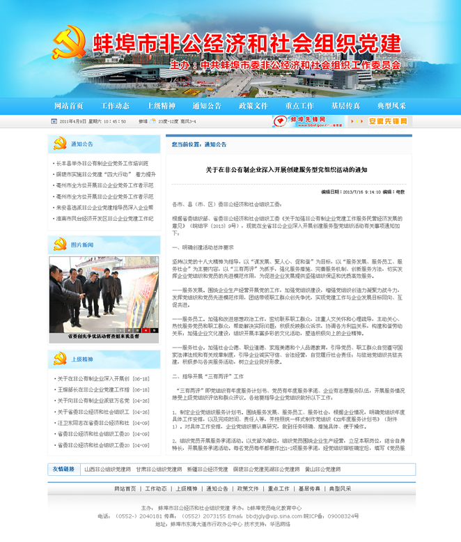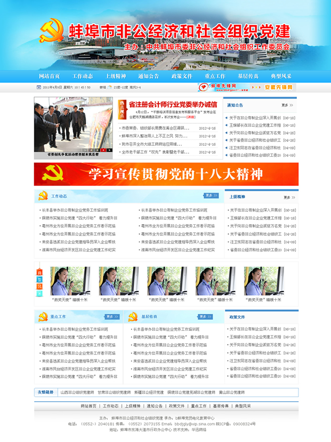 網(wǎng)頁由中共蚌埠市委非公經(jīng)濟和社會組織工作委員會,蚌埠先鋒網(wǎng)電教中心承辦,作為蚌埠先鋒網(wǎng)子欄目,主要用于蚌埠非公經(jīng)濟和社會組織黨建工作有關信息發(fā)布和經(jīng)驗交流。